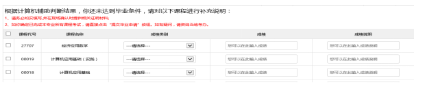 說明:部分專業證書課程成績在自考系統中無法顯示,在網上申報畢業時,此部分課程成績選擇“實踐”錄入實際分數,采購專業證書課程成績≥60分錄入分數,50≤成績<60分的,填“免”。