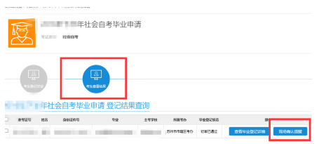 網上提交申請后,考生須及時關注審核結果??忌稍凇翱忌榭唇Y果”功能中的【現場確認提醒】一欄查看審核意見,初審通過的考生按所轄區考辦要求在規定時間內到指定地點提交畢業材料。