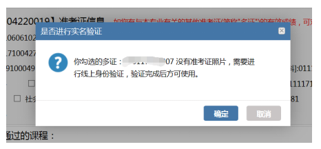 如申請畢業的準考證沒有準考證電子照片,請按系統提示要求先完成線上身份驗證后再進行登記。