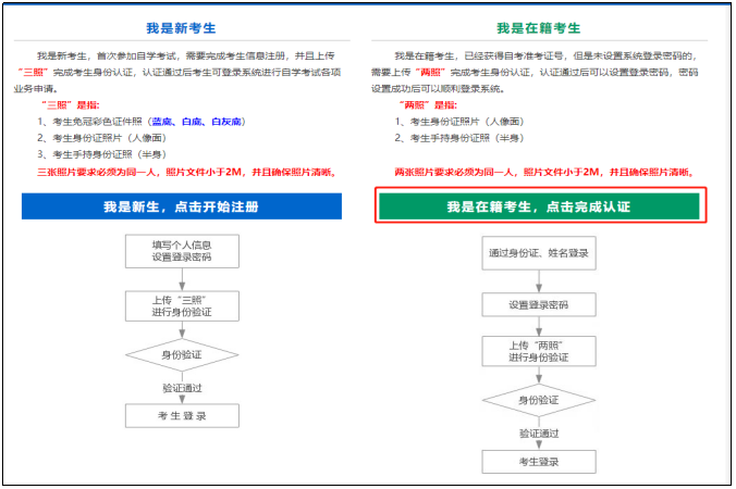 在籍考生報名需要上傳“身份證人像面照”、“手持身份證照”,系統認證通過后即獲取報名資格,便可登錄系統進行轉考申請。