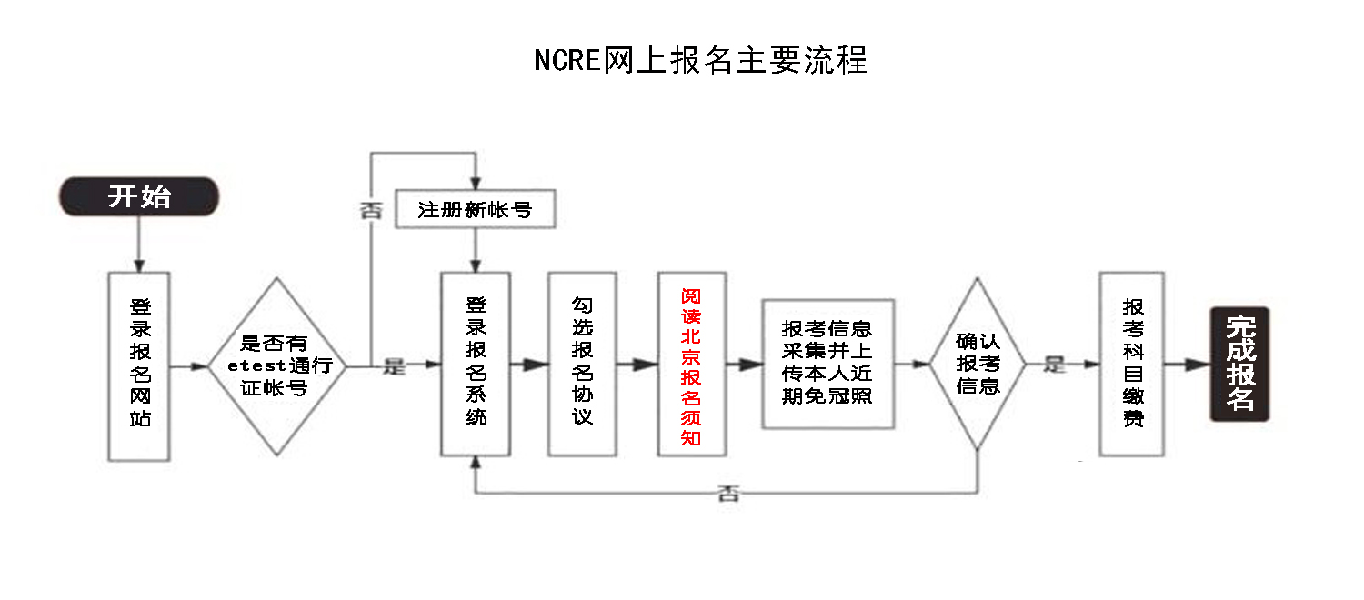 NCRE采取網(wǎng)上報(bào)名,報(bào)名考務(wù)費(fèi)每科目75元。北京考生登錄全國(guó)計(jì)算機(jī)等級(jí)考試報(bào)名網(wǎng)站(網(wǎng)址:https://ncre-bm.neea.cn),點(diǎn)擊“(11)北京市”報(bào)名入口進(jìn)行網(wǎng)上報(bào)名。考生登錄報(bào)名網(wǎng)站后,須認(rèn)真閱讀“省通告:北京市NCRE報(bào)名須知”等公告,知悉并遵照相關(guān)要求,按照網(wǎng)頁(yè)提示完成信息填寫、照片上傳和繳費(fèi)。